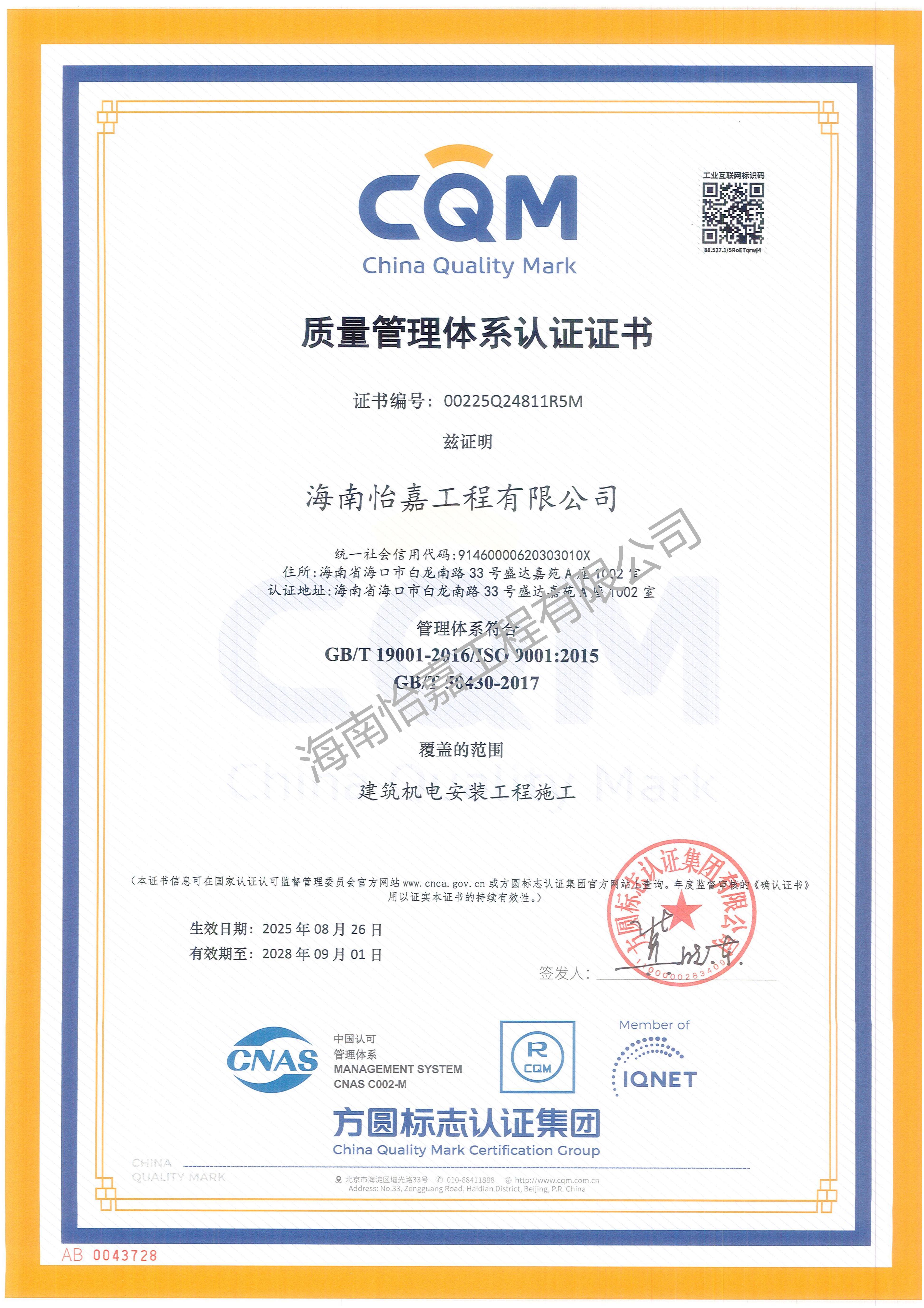 质量管理体系认证证书-2025